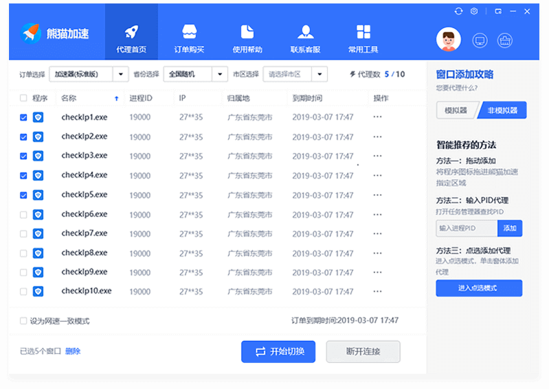 電腦玩端游或者使用模擬器玩手游的話,會首選單窗口單IP的原因,就是因為它可以有針對性的選擇自己需要多開的軟件,不僅可以節省ip資源(省錢),也能更大限度的保證ip的質量。 而且在操作上比較省事,從注冊到使用也非常簡單,最重要的是也不影響電腦其他聯網軟件的使用,通俗的說就是可以更大限度的保正賬號的安全時防止封號